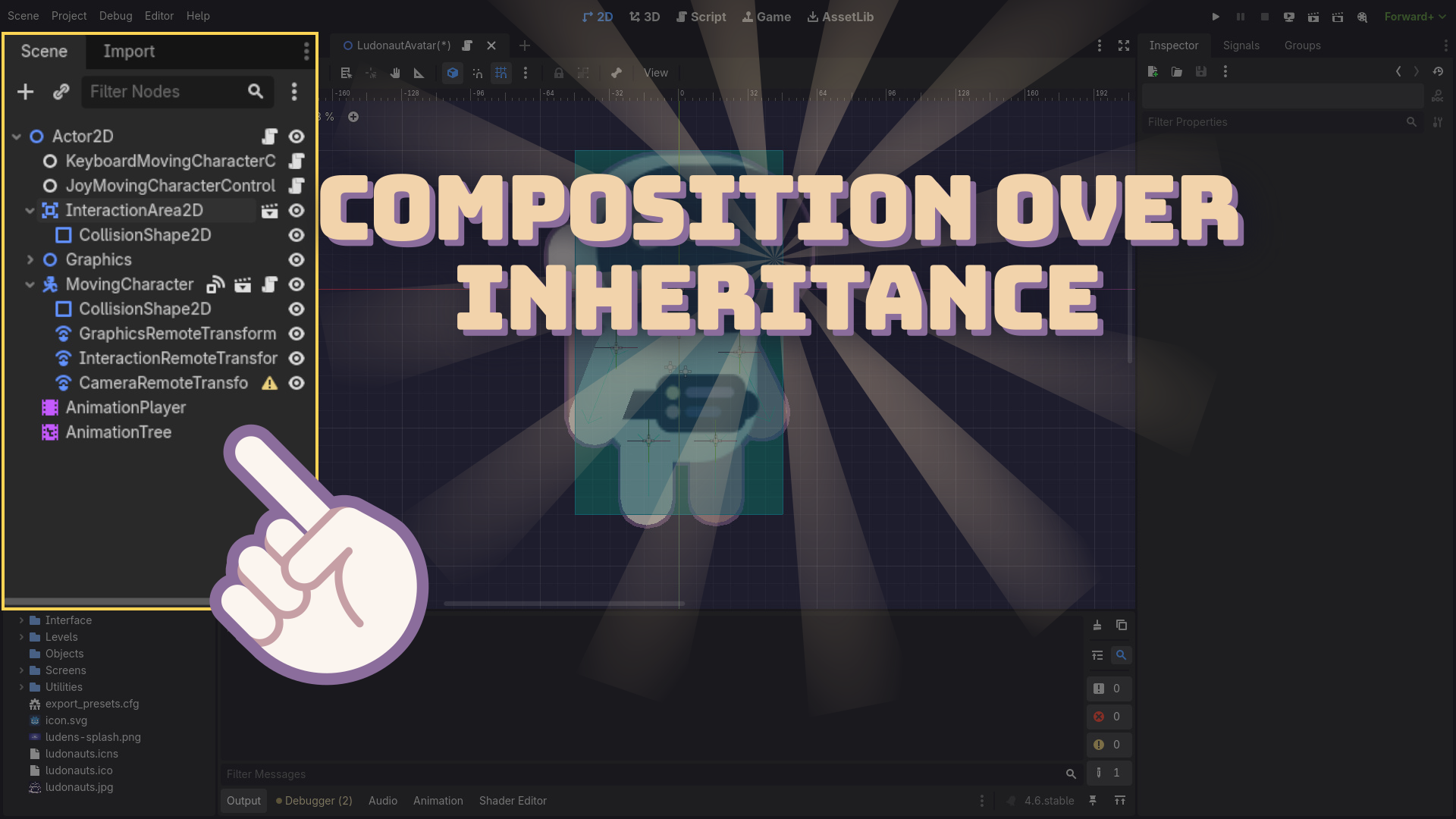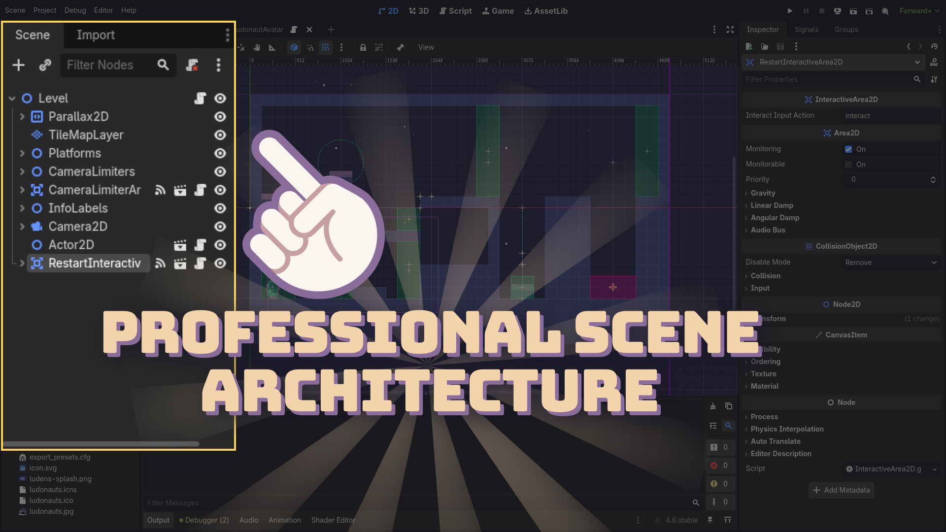 A game isn’t just a bunch of objects appearing on the screen, right? For example, in the demo you played with the Ludonaut, our very own Godot 2D Platformer Character controller. To learn how to make platformer character controllers, check the project below.