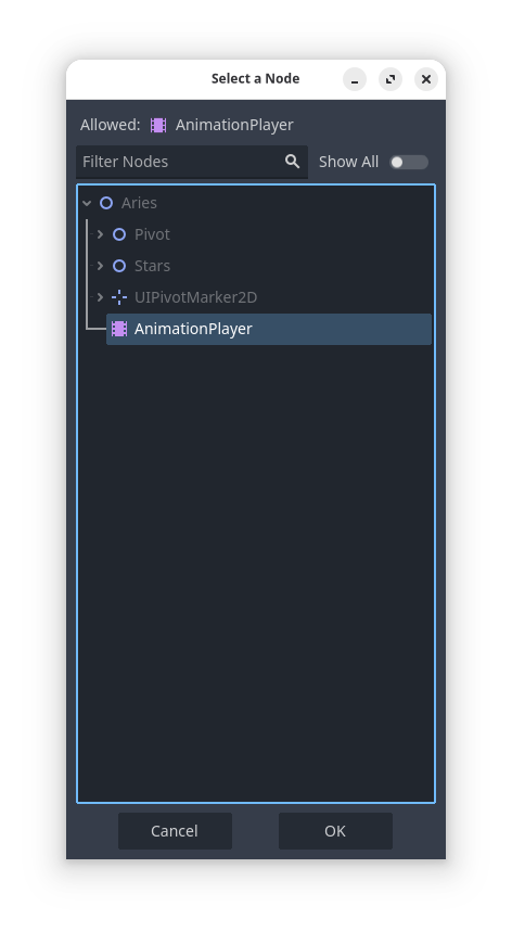 Let’s focus on what matters, the 20% of the knowledge that will give you 80% of this tutorial's value. Open the res://Actors/Aries/Aries.tscn