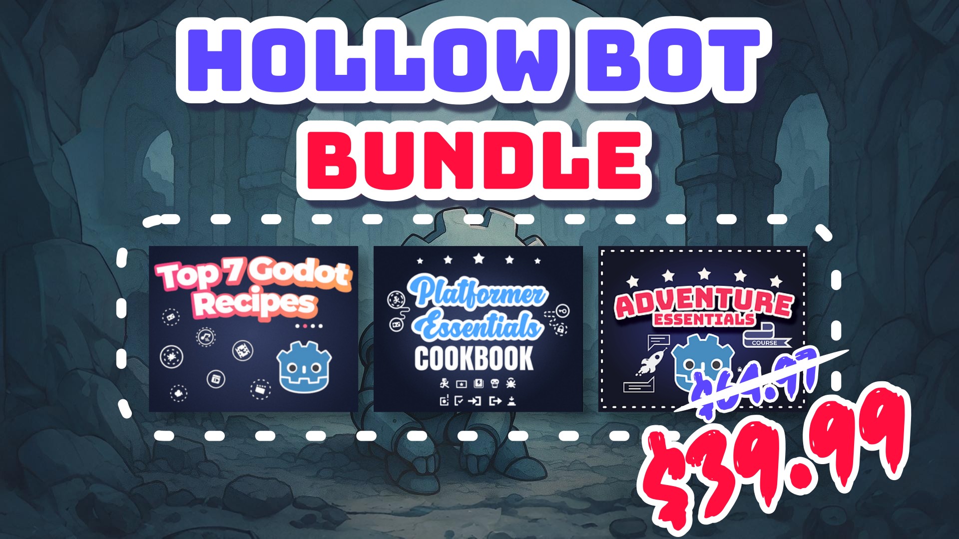 If you're ready to bring the depth, polish, and challenge of Hollow Knight-inspired boss battles into your own Metroidvania, now's your chance to make it happen. By supporting the Platformer Essentials Cookbook - Hollow Bot Update through the Hollow Bot Bundle, you'll get immediate access to 3 learning resources (2 books and 1 video course) packed with over 40 tutorials to guide you through creating rich, immersive Metroidvania games in Godot Engine 4.
